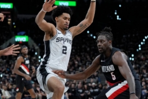 开拓者赢下马刺,1比1。