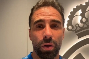 24直播网4月22日讯 西甲第33轮比赛,皇马主场2-1击败阿拉维斯,皇马后卫卡瓦哈尔赛后寄语球迷。