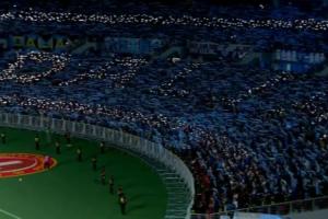 24直播网04月22日讯 中超第7轮,辽宁铁人主场迎战大连英博。大连英博球迷在客队看台用手机闪光灯拼出“大连”字母。