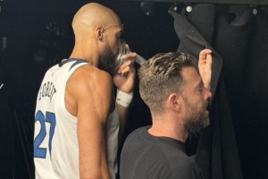 据丹佛体育电台《The Drive》节目主持人Zach Bye爆料,森林狼中锋戈贝尔在比赛中似乎出现了不适应丹佛高原的情况,被拍到在球员通道内吸氧。