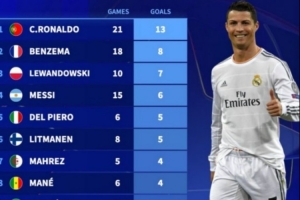 1、C罗 21场13球