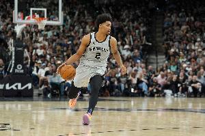 本场比赛,马刺榜眼哈珀替补出战26分钟,9中6,三分1中1,罚球5中4,拿到17分3篮板1助攻3抢断,正负值+4。