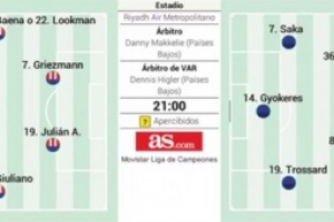 24直播网4月29日讯 北京时间4月30日3点,欧冠半决赛首回合,马竞对阵阿森纳,《阿斯报》赛前预测双方首发阵容。