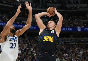 据统计,在系列赛的前两场比赛中,当和戈贝尔直接对位时,约基奇合计17中6得到15分,命中率35.3%;贾马尔·穆雷合计10中3得到7分,命中率30%。